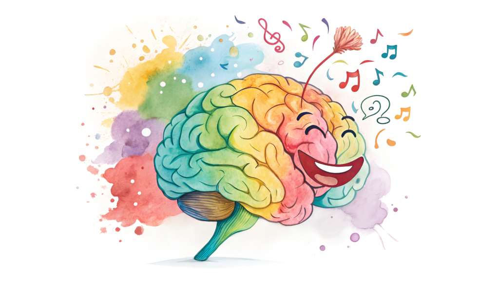 Colorful Watercolor Illustration of a Happy Brain BY Rom Creator via Canva